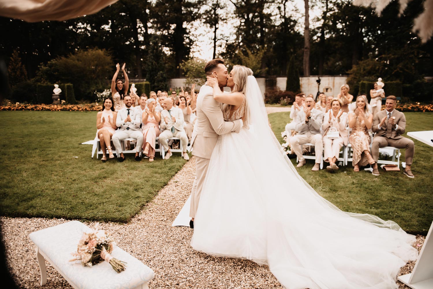 De zon scheen speciaal voor hen, wat de sfeer alleen maar magischer maakte. De ceremonie vond plaats op het betoverende landgoed van Kasteel Heeswijk, omringd door groen en de prachtige architectuur van het kasteel zelf.